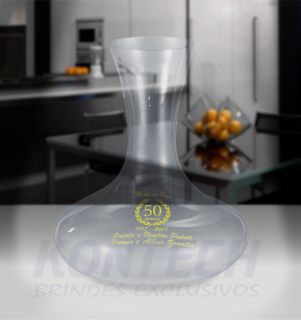 Decanter de Vidro para vinho 750 ml, medindo 220 mm de altura e 77 mm de diâmetro superior.